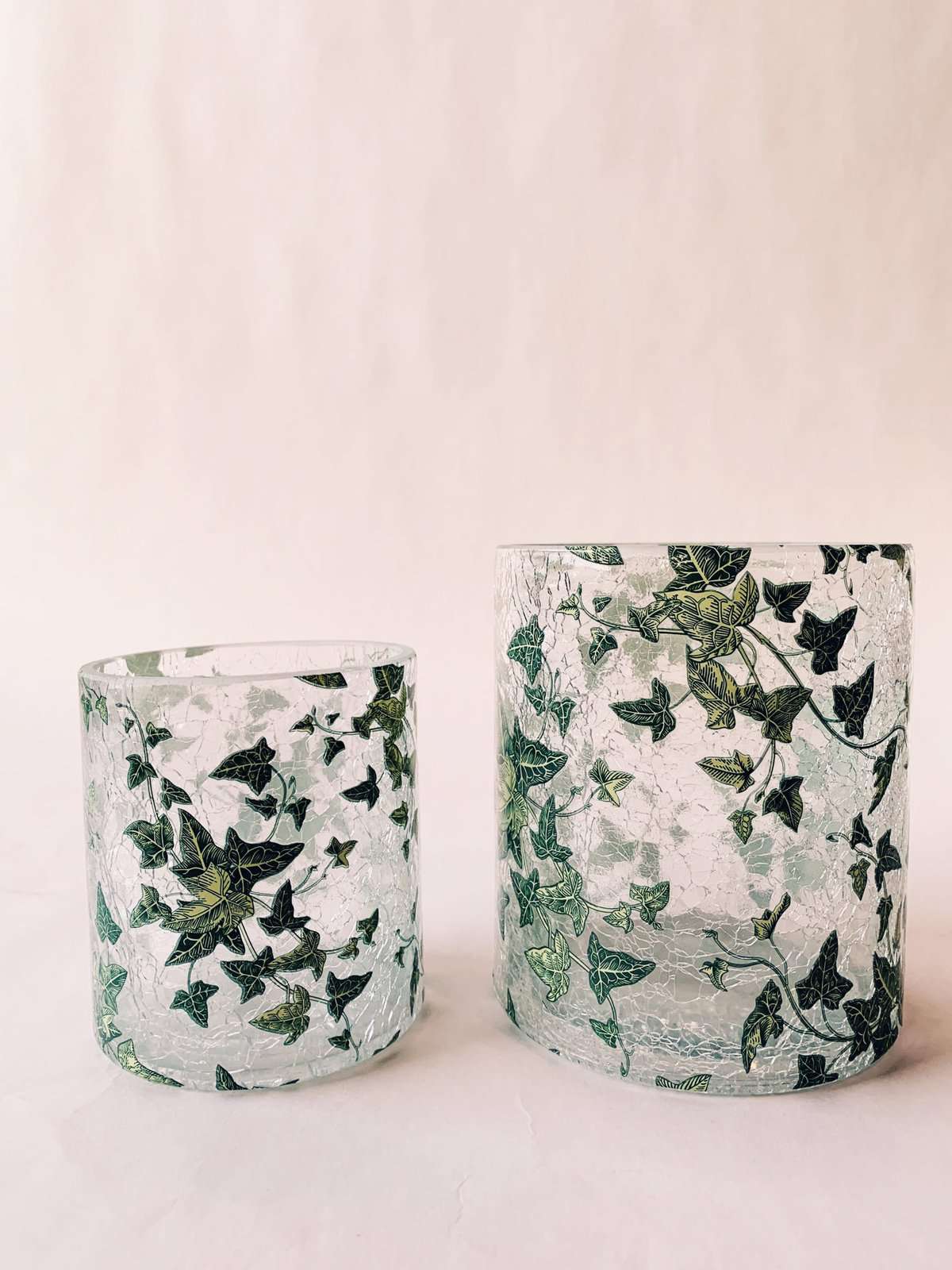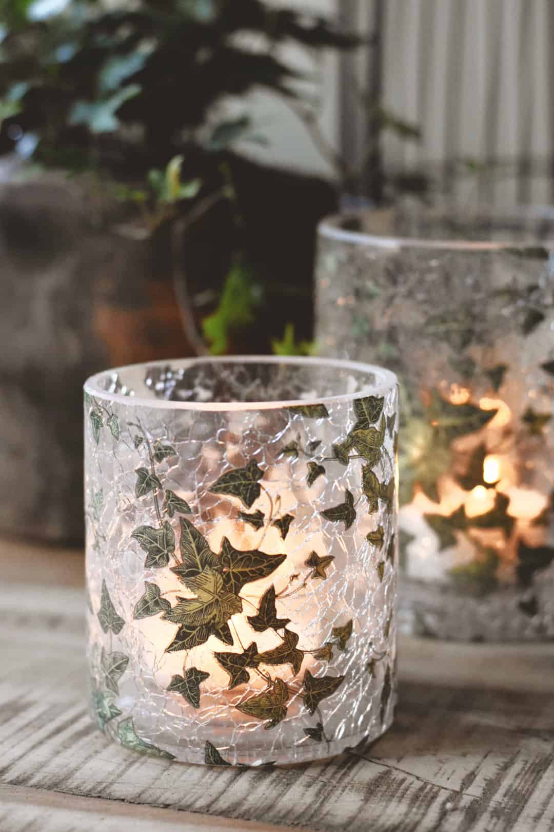 Lysglass krakelert retro eføy 9×10 cm