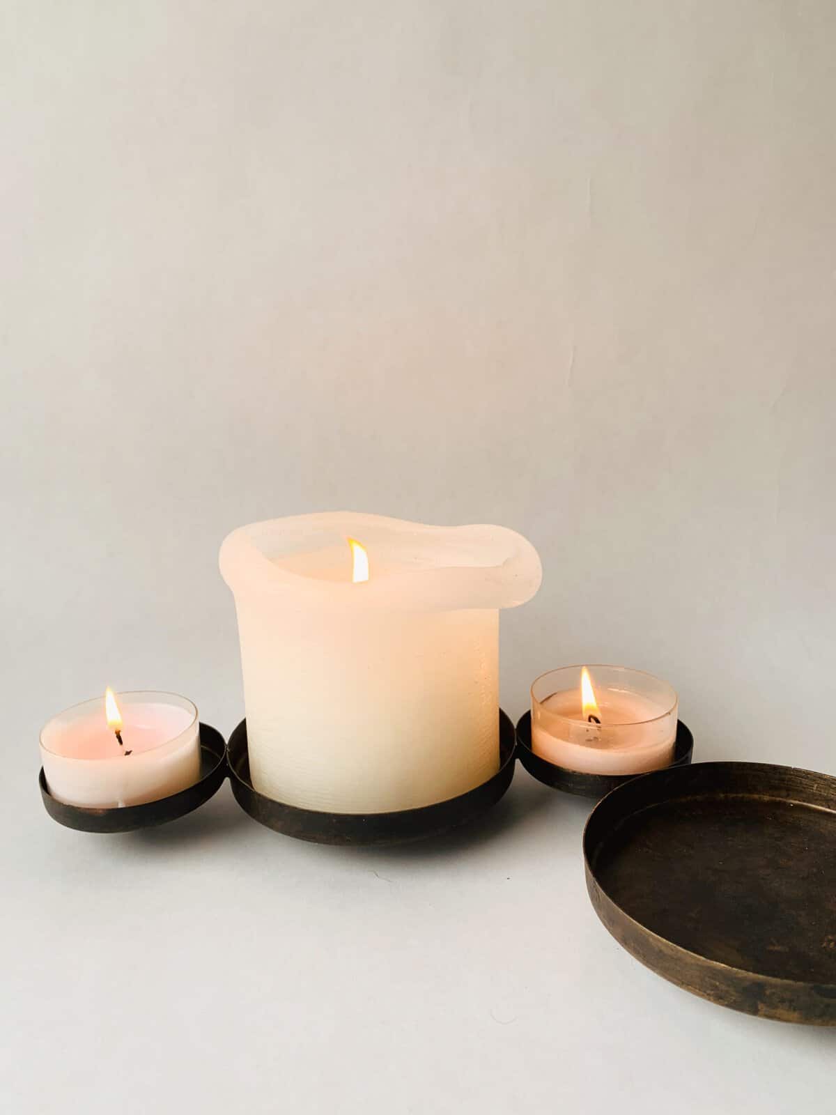 Lysholder til telys og kubbelys 54 cm antikk brun