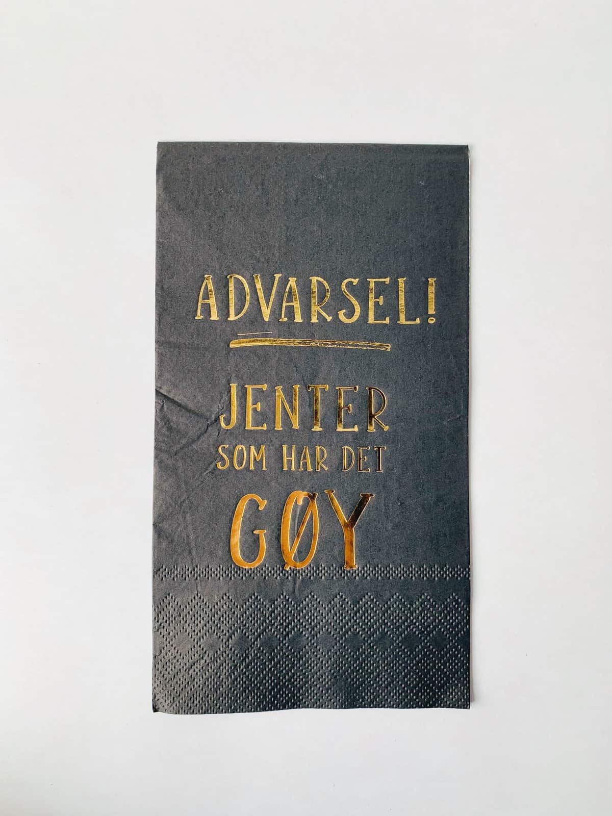 Serviett «Advarsel! Jenter som har det gøy» 33×40 cm sort