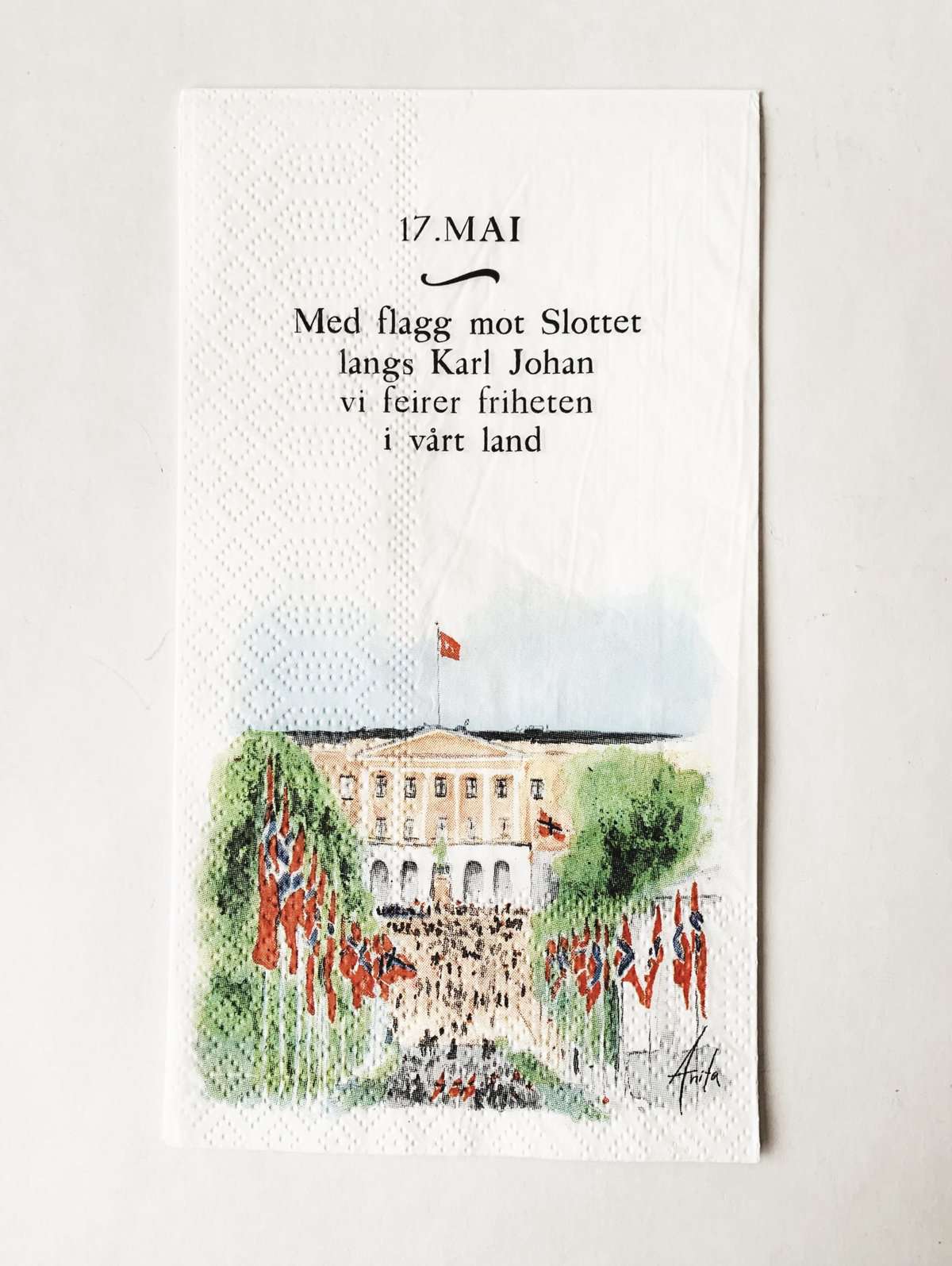 Serviett buffet «17. mai» Karl Johan Akvarell malt av Anita Sletten
